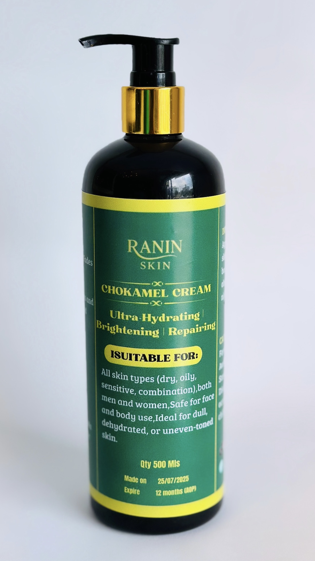 Chokamel Cream is a rich, deeply nourishing moisturizer that transforms dry, dull skin into soft, radiant perfection. It fades dark spots, evens out skin tone, smoothens rough patches, and repairs the skin barrier — leaving your skin hydrated, supple, and glowing.